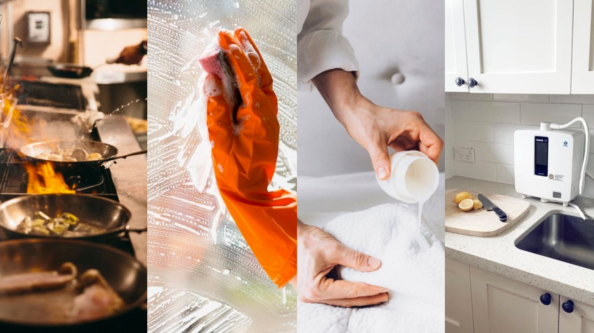 Clean knives, cutting boards, dish towels, and kitchen cloths etc. Clean in and around the kitchen, which is a breeding ground for germs.